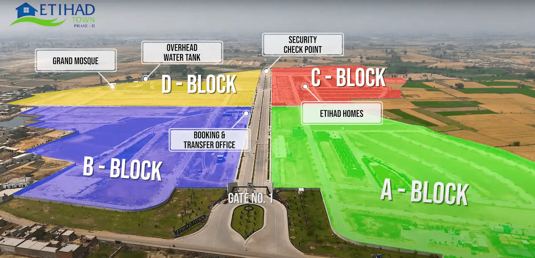 Etihad Town Lahore has modern architecture designing with a healthy safe residential environment. The projects developed with modern development & state of the art infrastructure. After the success of the Etihad town phase 1, Etihad Group are developing another project Etihad Town Phase 2. Both Phases are developed with 2.5 years’ time difference. Phase 1 spread over an area of 564 Kanals land but Phase 2 has 1950 Kanal land for plotting. While Phase 1 has fully developed and under possession, where you construct your dream house. Block A: Possession received in December 2022. Block B: Possession received in March 2023. Block C: Possession received in June 2023.